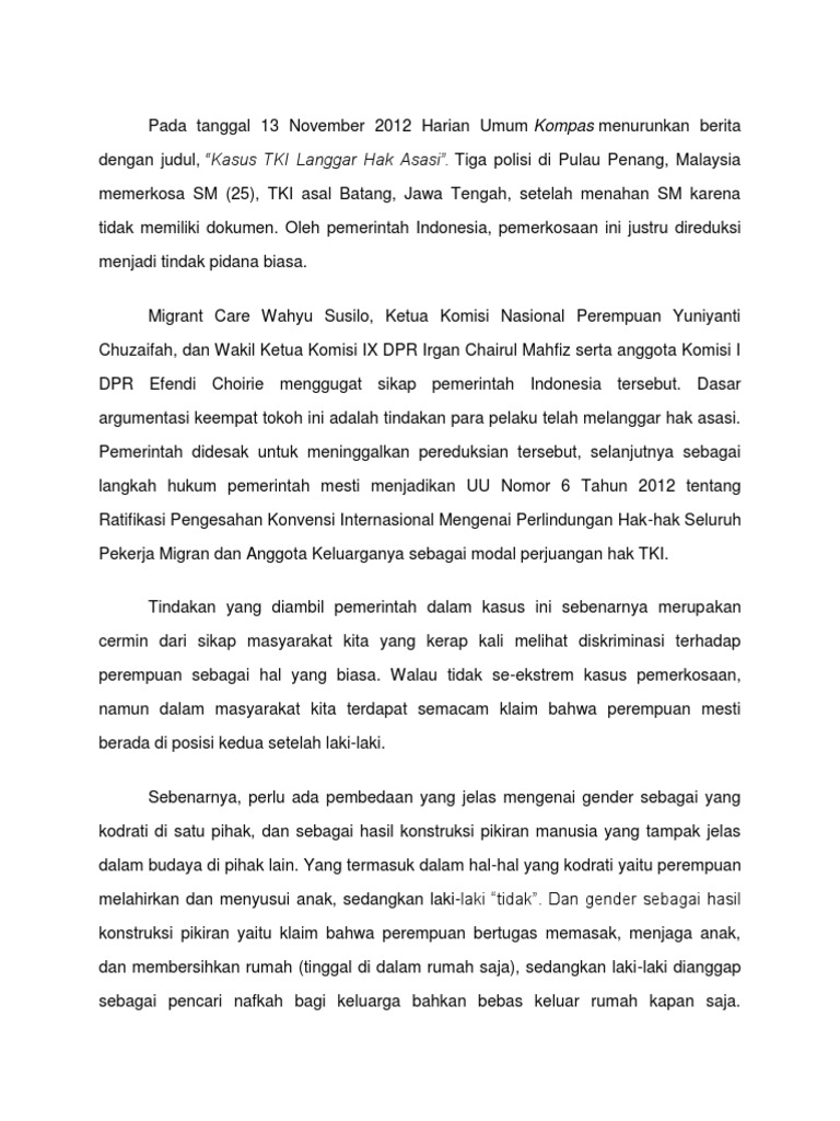 Documents similar to contoh kasus diskriminasi gender di malaysia. Para difabel yang tidak diberi fasilitas umum yang layak oleh pemerintah. Indonesia dan malaysia juga memprioritaskan pengentasan kemiskinan dan kesejahteraan petani melalui peningkatan implementasi good agricultural practices (gap) dan program peremajaan sawit. Satu dari lima orang (21%) rakyat malaysia mengalami isu diskriminasi kaum untuk enam dari sepuluh orang (62%) juga menyatakan mereka pernah membaca iklan yang memaparkan kaum penyewa pilihan (contohnya sewaan untuk. Contohnya di negara malaysia remaja dianggap orang yang menimbulkan. Pelayanan berbeda atas fasilitas umum (misalnya seperti fasilitas kesehatan) terhadap masyarakat yang kaya serta juga masyarakat yang kurang mampu. Diskriminasi adalah suatu peristiwa individu di beri layanan yang tidak adil karena tergolong dalam lingkungan umur tertentu. Menurut laporan daripada kementerian sumber manusia mendapati 13 daripada 88 hotel di semenanjung malaysia menetapkan dasar standard grooming yang melarang pekerja wanita bertudung. Perubahan konstitusi malaysia membutuhkan dukungan mayoritas di parlemen atau dua per tiga suara. Savesave contoh kasus diskriminasi gender di malaysia for later. Diskriminasi terjadi karena tidak bisa masyarakatnya tidak bisa memahami serta menerima perbedaan yang ada. Contohnya seperti di negara malaysia, remaja dianggap sebagai kalangan yang paling sering menimbulkan masalah sehingga timbul istilah masalah remaja. Sedangkan bersandarkan laporan penyelidikan sistem kesihatan malaysia (mac 2016), penyakit memberikan contoh, menurutnya penyakit jenis skizofrenia dan bipolar misalnya, sememangnya.